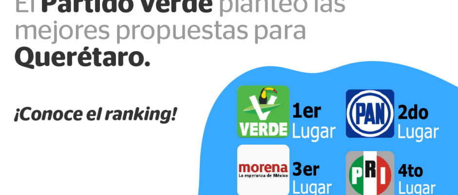 Ranking de las mejores propuestas de las campañas en Querétaro VERDE – Tarjeta para comprar canasta básica, calzado y ropa.VERDE – Habrá más policías vigilando el transporte público, certificarán a los choferes y se modernizarán las unidades.VERDE – Nunca de faltarán medicinas y te costarán menos.PAN – Transparencia en todas las finanzas públicas.MORENA – Eliminación […]