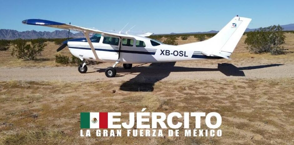 La Secretaría de la Defensa Nacional informó que el 24 de enero de 2022, elementos del Ejército y Fuerza Aérea Mexicanos, en el Marco del Plan Nacional de Paz y Seguridad 2018-2024, para contribuir a la Estrategia Nacional de Prevención de Adicciones Juntos por la Paz, aseguraron una aeronave Cessna 206, matrícula XB-OSL, con 338 kilogramos aproximadamente de diversas droga y llevaron a cabo la detención de dos personas; lo anterior, derivado de un alertamiento aéreo en el estado de Sonora.