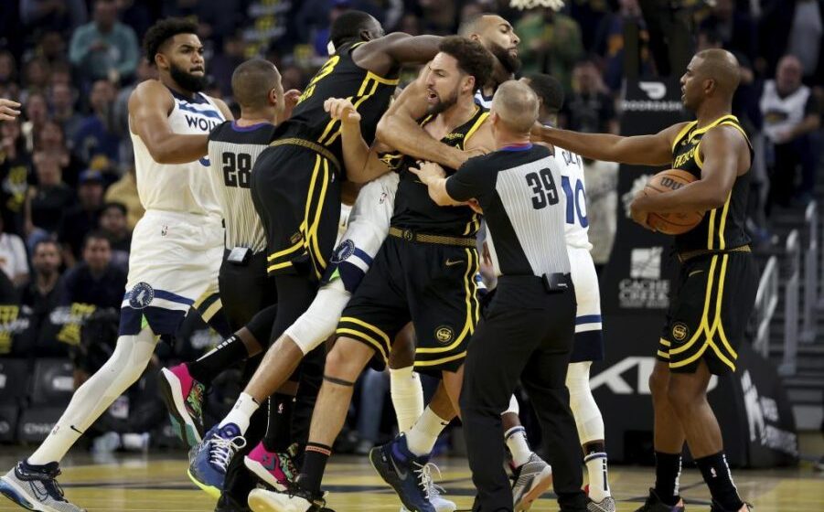 Una bochornosa situación marcó el partido de NBA In-Season Tournament entre Golden State Warriors y Minnesota Timberwolves. Se venía calentando en fechas anteriores por el cruce de declaraciones entre Anthony Edwards y Draymond Green, y su primer encuentro de la temporada, pero llegó a un máximo lamentable cuando el partido, que finalmente ganaron los Wolves por 101-104 en la Bahía, no llevaba ni un minuto de juego disputado. Tres expulsados, Klay Thompson y Draymond Green (Warriors), y Jaden McDaniels (Timberwolves), es el balance.